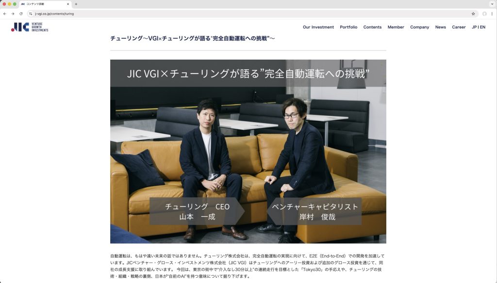 この記事では、JICベンチャー・グロース・インベストメンツ株式会社様にて公開されている、コンテンツページの写真撮影をさせていただきましたので紹介いたします。