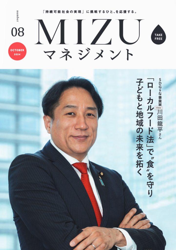 季刊誌「MIZU マネジメント 第8号」の表紙とインタビューページ(参議院議員 川田 龍平さん|一般社団法人 シネカルチャーさん)の撮影をさせていただきました。